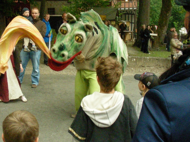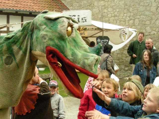 Groß und Klein strömt zusammen, wenn Fjodor – der Plapperdrache mit seiner Betreuerin Katinka über das Festgelände streift. Lauthals erzählt er dann seinem Publikum Gedichte, “singt” Lieder, zeigt atemberaubende, hellseherische Kunststücke, speit GEWALTIGE FLAMMEN und erfüllt Wünsche. Eben alles, was “echte” Drachen so den ganzen Tag über machen. Hier könnt ihr mal schauen was da so abgeht! http://www.youtube.com/watch?v=igUHe_bjXz4