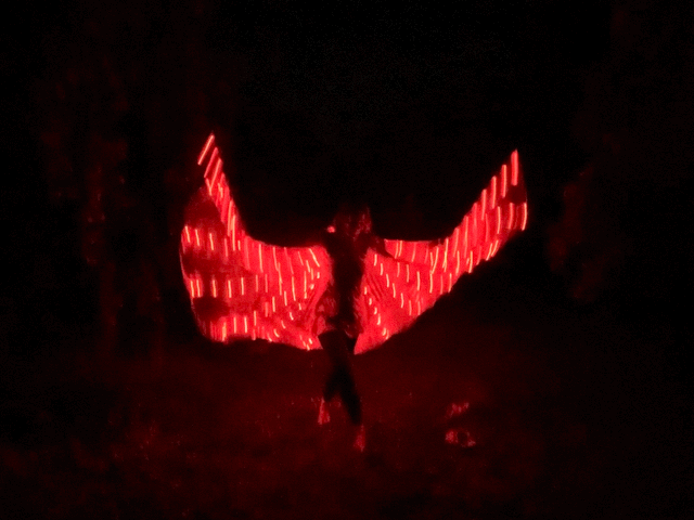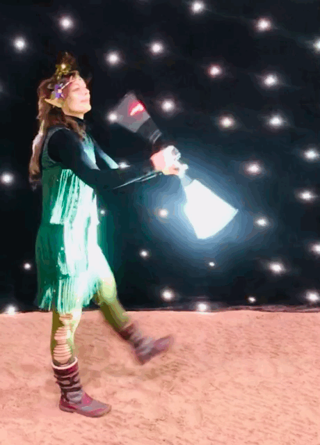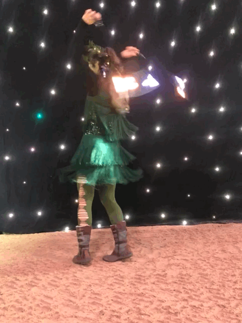 Zu den sanftmütigsten und liebenswertesten Tieren im Elfenwald gehören die Glühwürmchen. Mit ihrer verspielten Art und ihrem fröhlichen Leuchten erheitern sie in den dunklen Stunden die Gemüter der Waldwesen. Doch ihr wahrer Zauber zeigt sich in den sternenklaren Feennächten wenn sie, gemeinsam mit den Elfen, anmutig im Mondenschein über die Waldwiesen tanzen. Im launigen Spiel umschwirren sie die Elfen, setzen sich in allen Regenbogenfarben auf deren Flügel und Haare, um gleich darauf wirbelnde Kreise und waghalsige Pirouetten zu vollführen. Der Feenreigen lockt selbst die seltenen Fireflies an, so dass Diese täuschend echte Flammen in den Abendhimmel malen. Dies ist solch ein zauberhaftes Schauspiel, dass Klara Phyll und Herr Blüterich (natürlich in Absprache mit allen Leuchtkäfern) beschlossen haben diesen hübschen Anblick nicht länger der Menschenwelt vorzuenthalten. Und so haben Faun, Elfe und Glühwürmchen gemeinsam eine 20minütige Show eingeübt um damit die Menschen auf ihren Festen zu erfreuen.