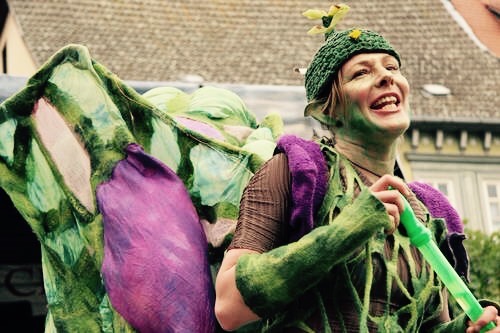Ein Fabelwesen – gewoben aus Fantasie, Seide, Federn und Wolle – zauberhaft und schwatzhaft flattert Klara Phyll, die Blütenelfe, durch die Welt der Menschlinge. Bienengleich bestäubt sie emsig die Menschlinge mit Elfenstaub.